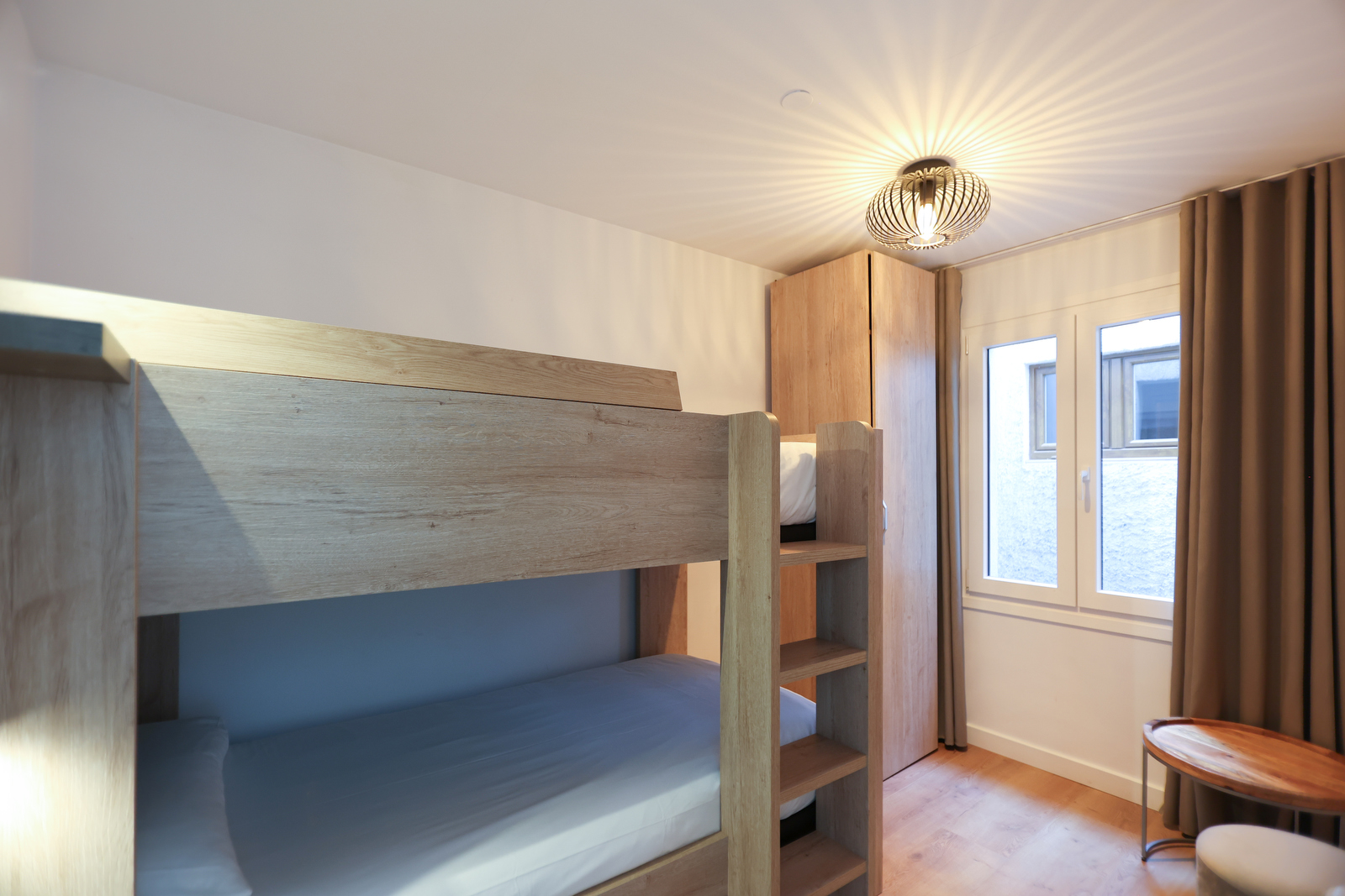 Amplio y familiar con balcón Ideal para grupos y familias grandes, este apartamento cuenta con 5 habitaciones: 2 matrimoniales, 2 con camas individuales y 1 con litera. Dispone de 2 baños completos, cocina totalmente equipada y un balcón tranquilo perfecto para relajarse después de un día en la montaña.